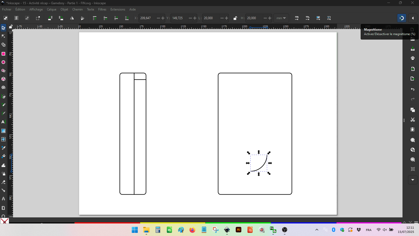- Sélectionner un objet avec l’outil Sélection (raccourci : S)