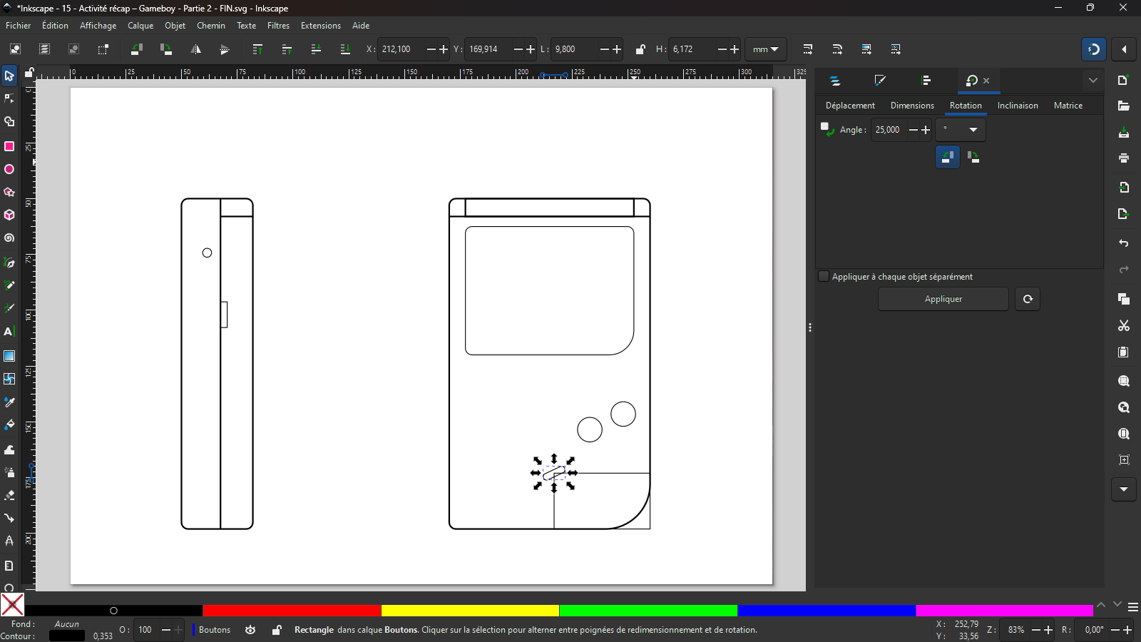 - Faire tourner un objet de 180° avec l'icône 'Retourner verticalement'