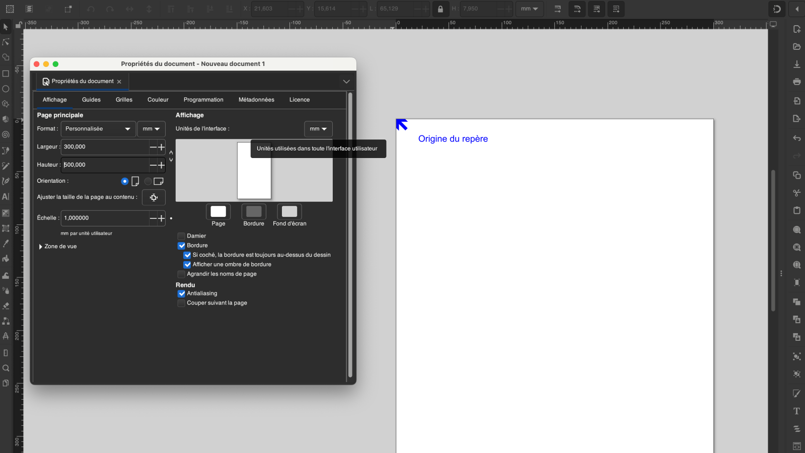 - Créer un fichier : son nom, les dimensions de la page, l’unité de mesure et d’affichage