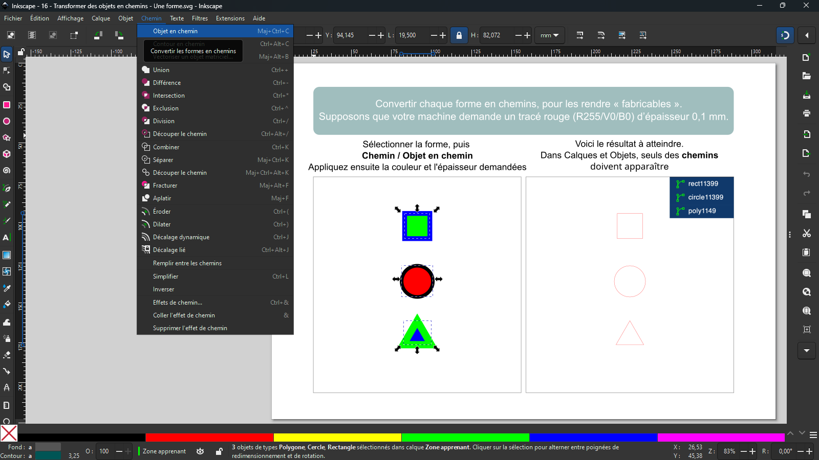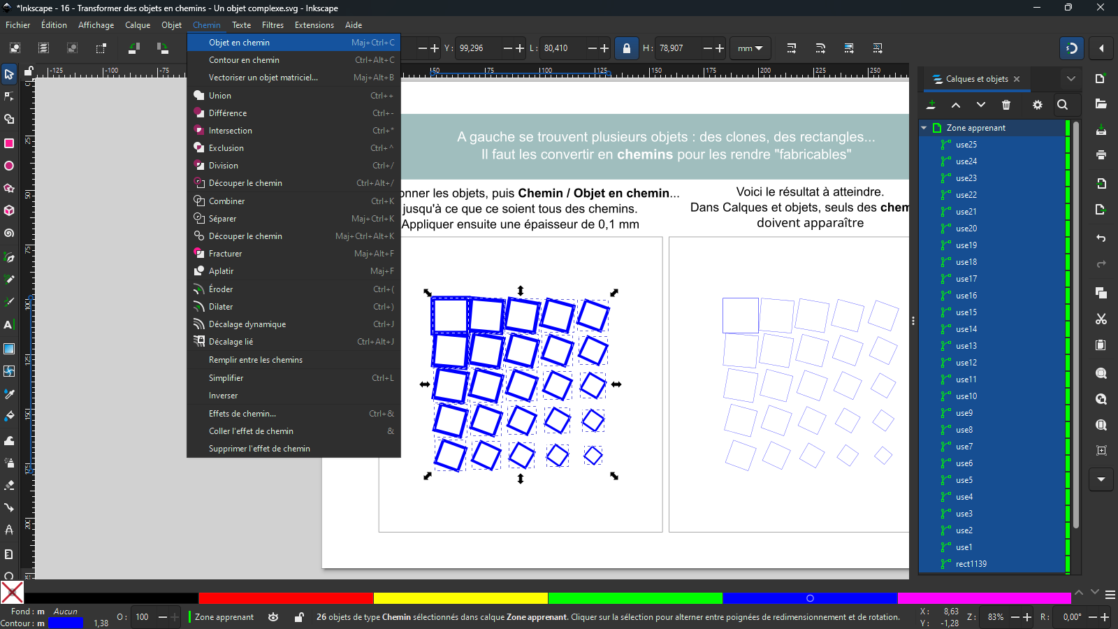 - Convertir un objet en chemin avec la commande 'Objet en chemin' (raccourci : SHIFT+CTRL+C)