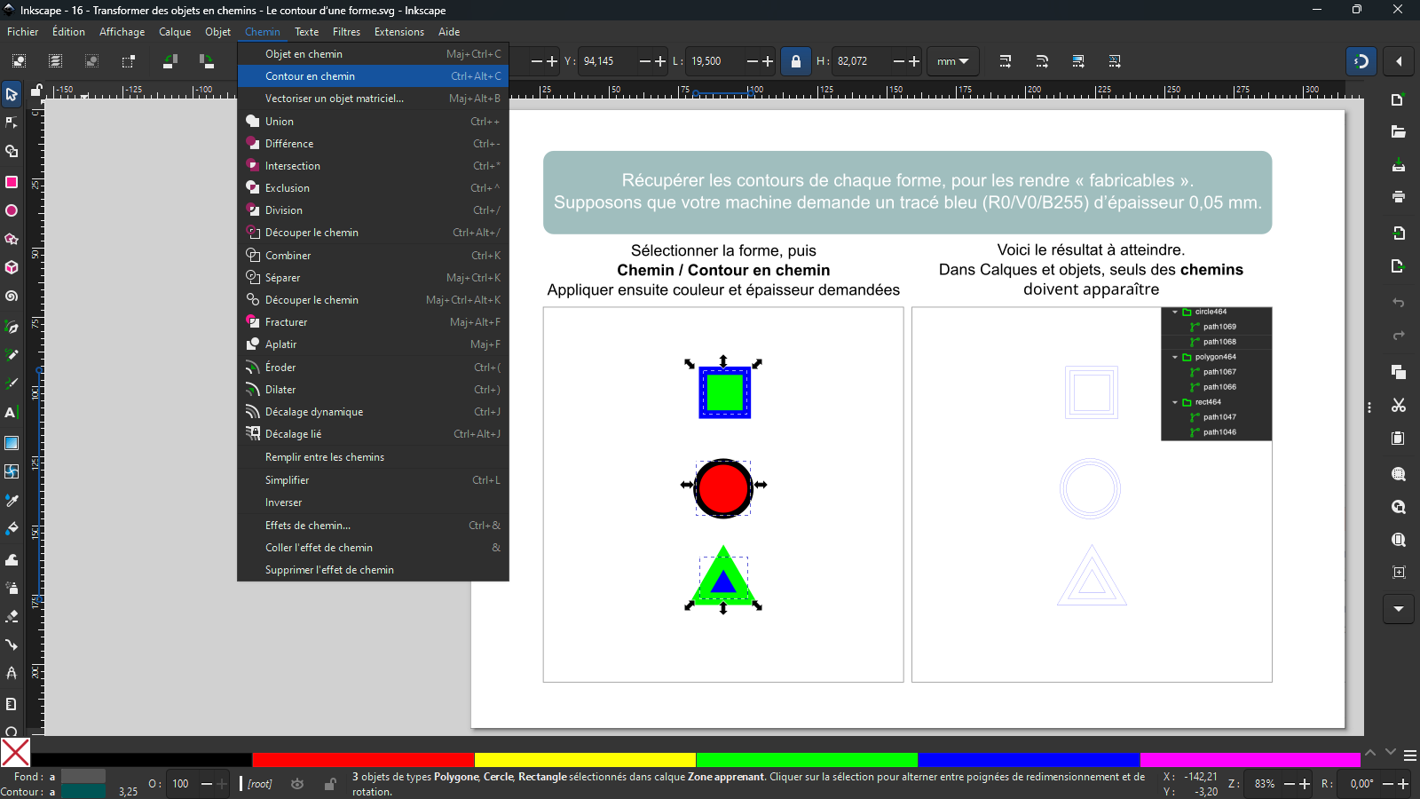 - Convertir en chemin une forme et son contour avec la commande Contour en chemin