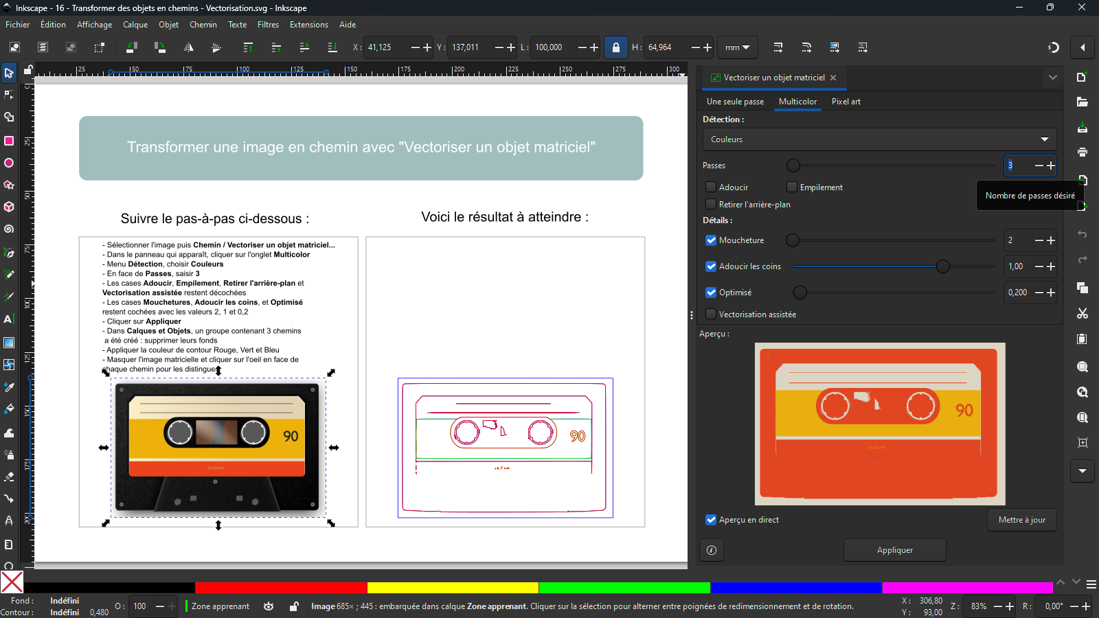- Transformer une image matricielle en chemin avec le panneau Vectoriser un objet matriciel"