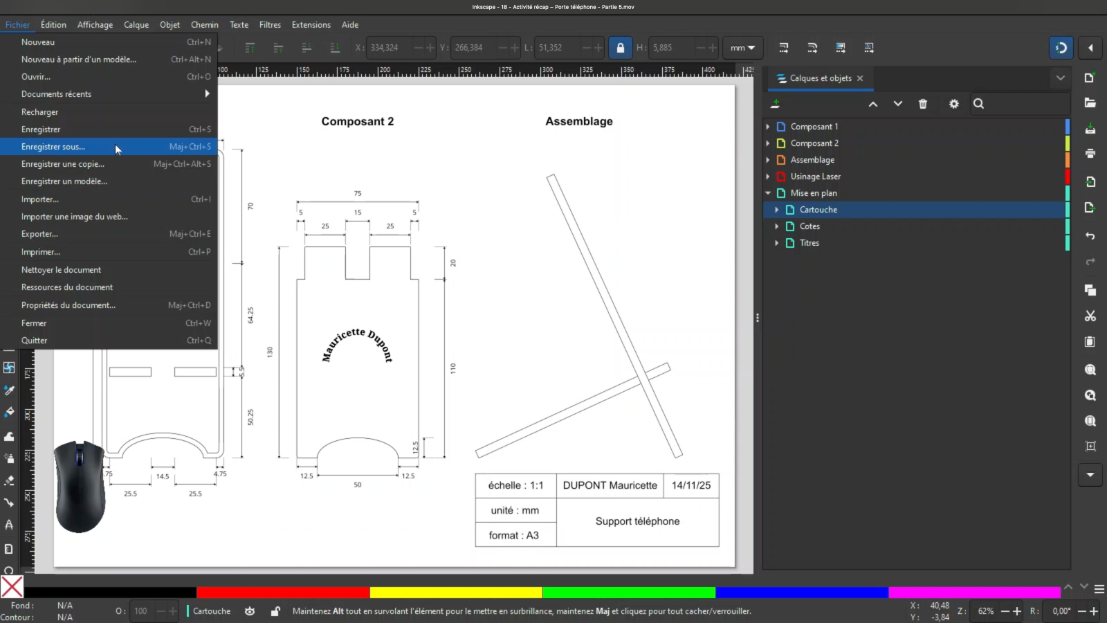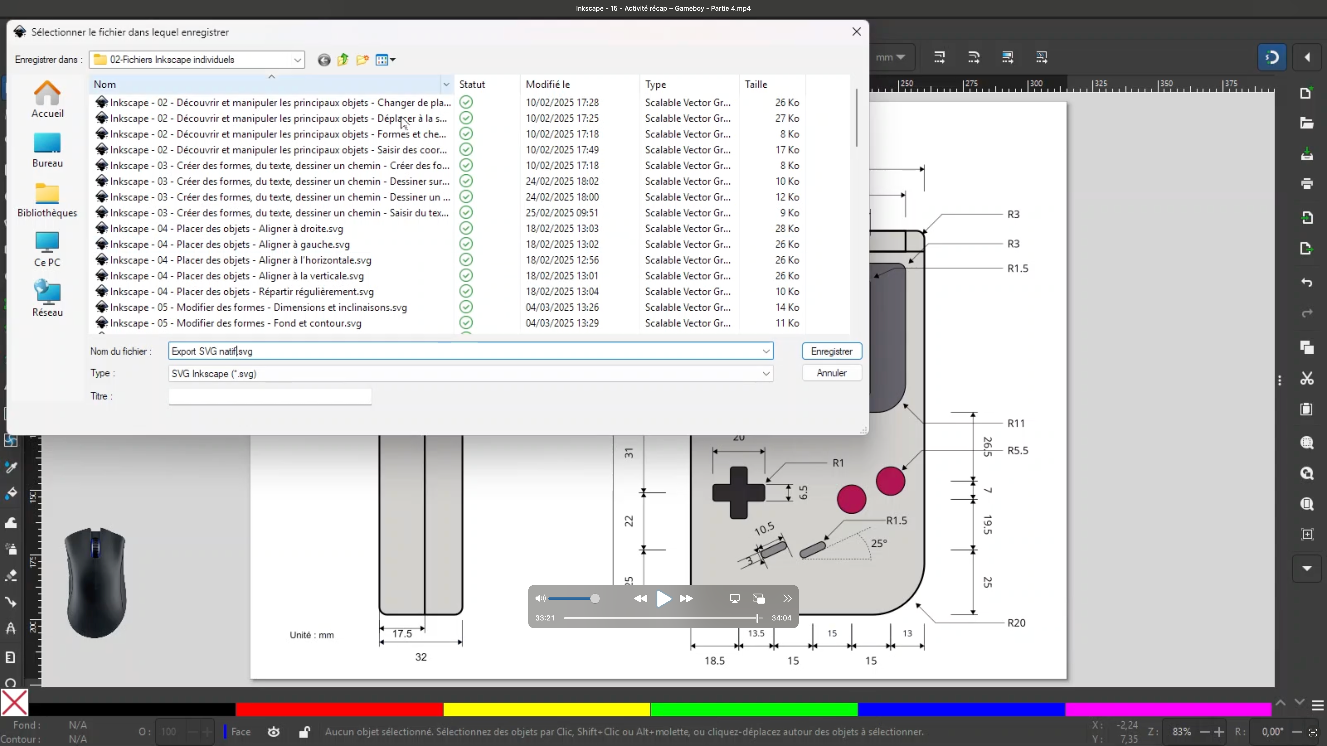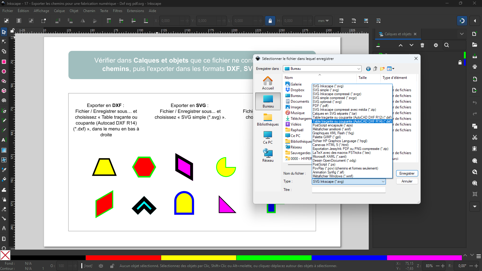 - Exporter dans différents formats vectoriels : dxf, svg, pdf avec la commande Enregistrer sous...