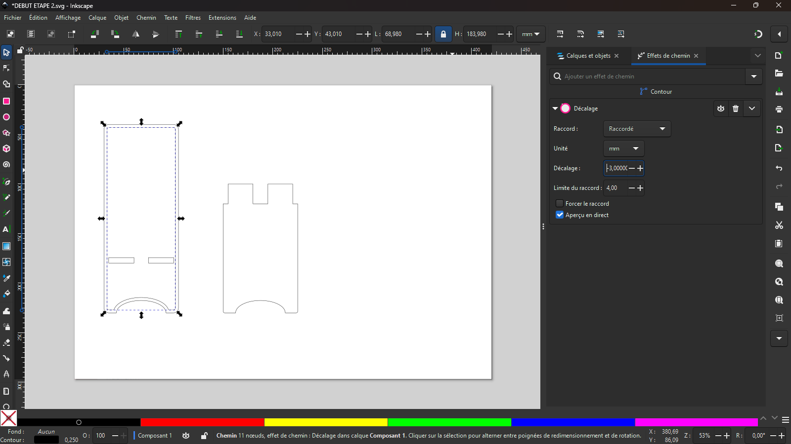 - Créer un chemin parallèle à un autre avec l'effet de chemin 'Décalage'