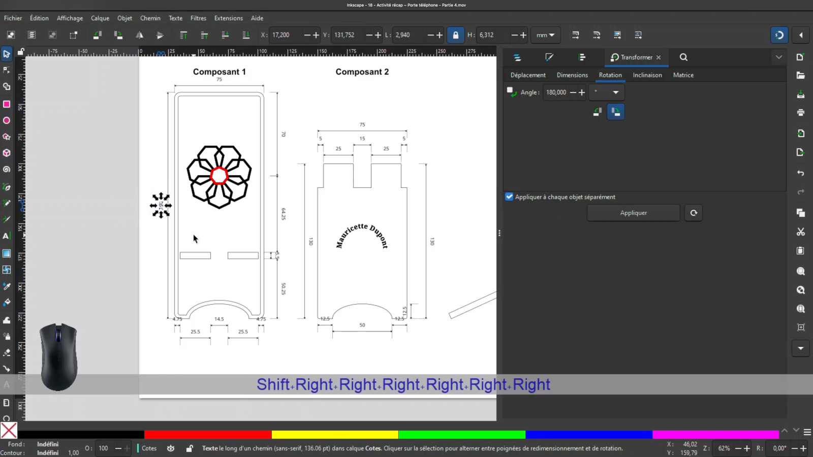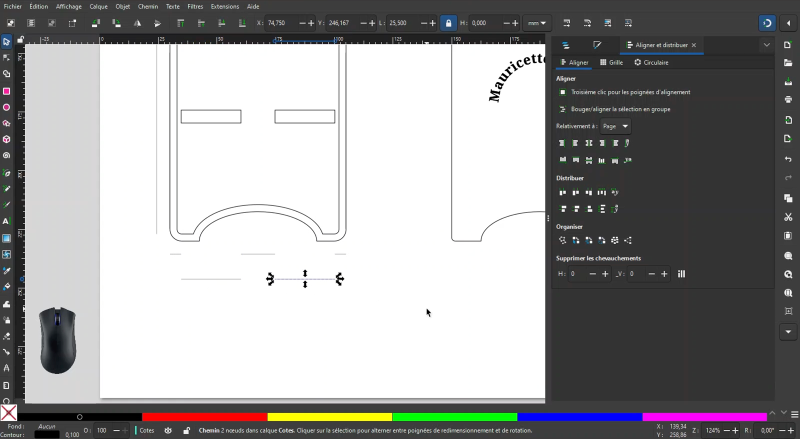 - Déplacer un objet d’environ 1 mm avec les flèches du clavier ; d’environ 10 mm en maintenant SHIFT