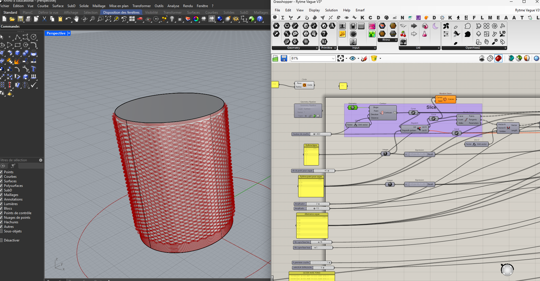 Rhino3D, avec ou sans Grasshopper, offre un contrôle précis sur des géométries complexes.