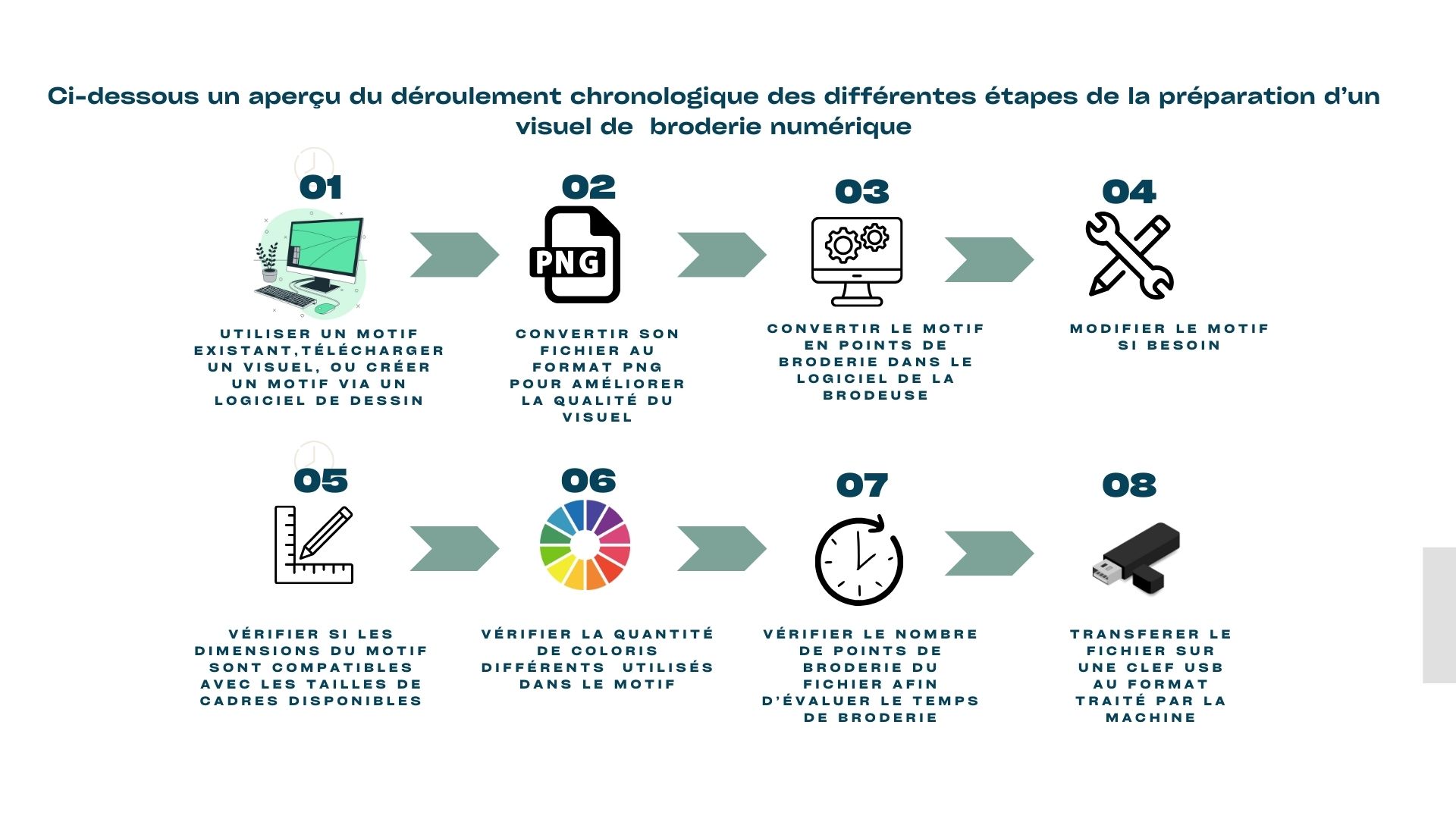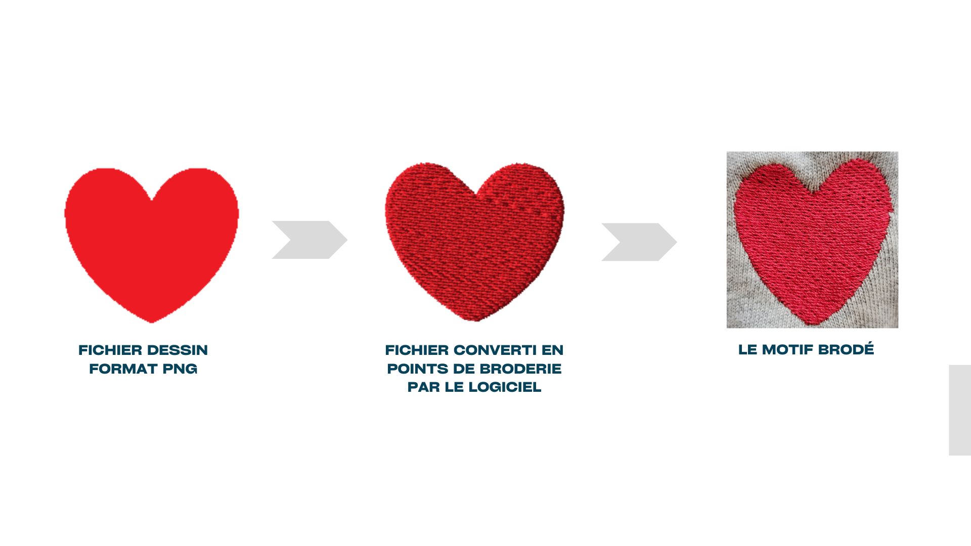 Le logiciel de broderie numérique est une solution technologique qui vous permet de convertir vos fichiers dessins, images, photos et texte en mouvements d’aiguilles qui pourront être lus et réalisés par vôtre brodeuse numérique.